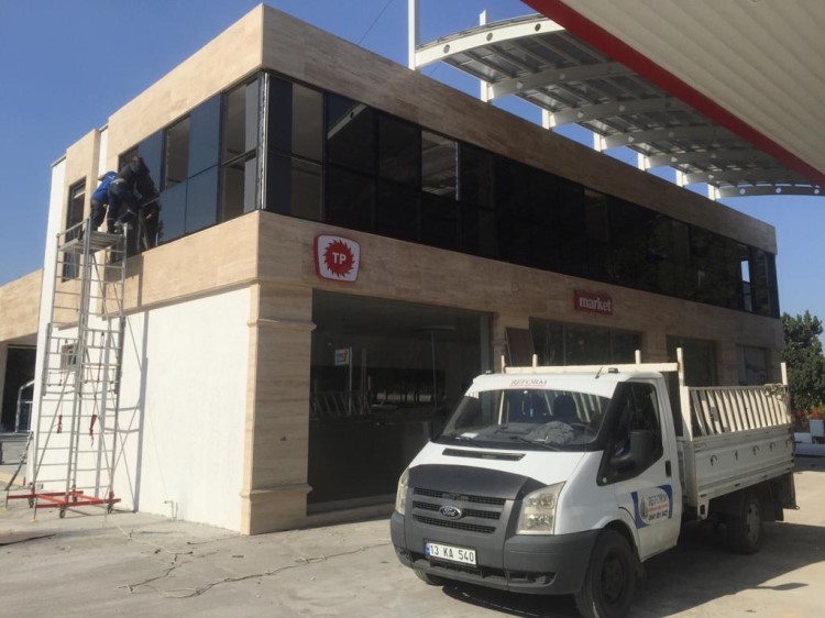 Dörtyol'da bulunan Özerli Türk Petrollerine Silikon Cephe Çalışması yapılmıştır.