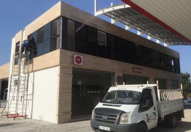 Dörtyol'da bulunan Özerli Türk Petrollerine Silikon Cephe Çalışması yapılmıştır.